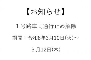 【お知らせ】1号路危険木処理作業 車両通行止め解除
