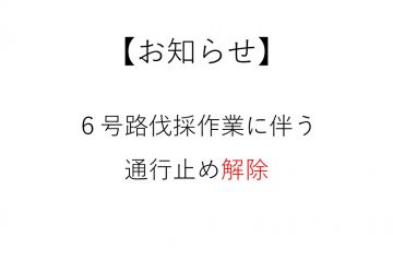 6号路危険木伐採作業に伴う通行止め解除のお知らせ