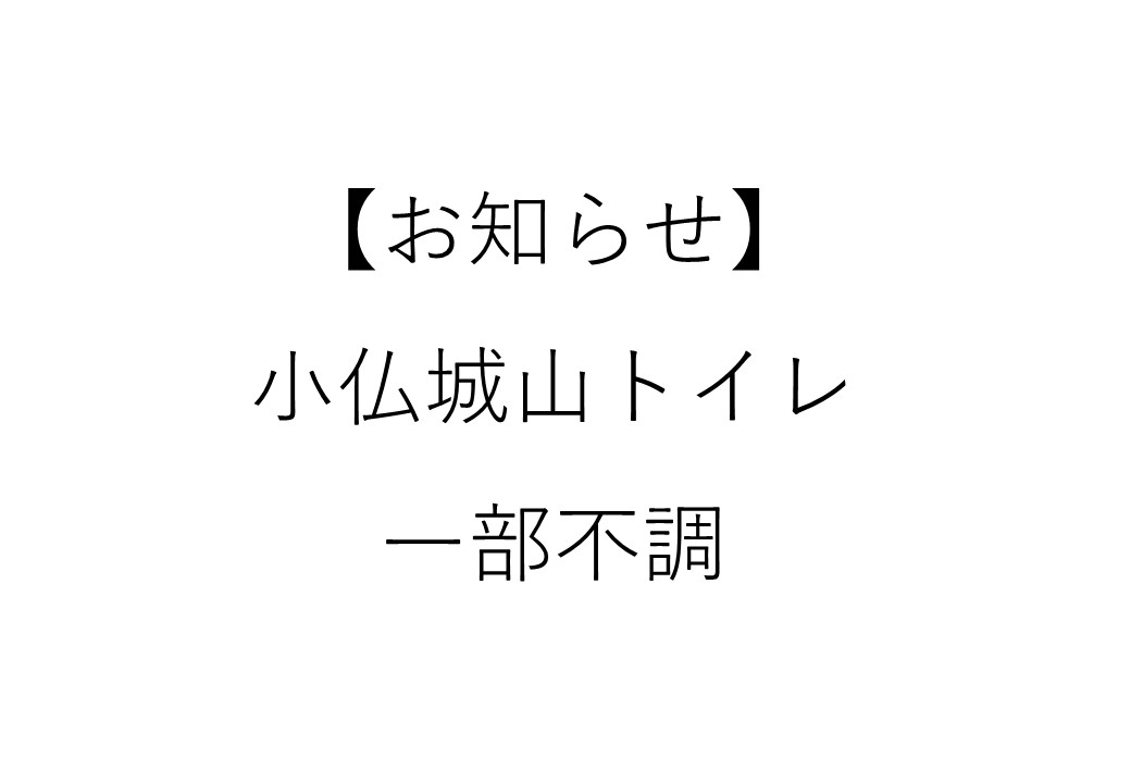 2024年6月9日 【お知らせ】小仏城山トイレ一部不調 小仏城山トイレが一部不調のため使用できる個室が少ない状態です。 ご利用の際は一丁平などのトイレをご利用ください。 ご不便をおかけしますが、ご理解とご協力のほど、よろしくお願いいたします。