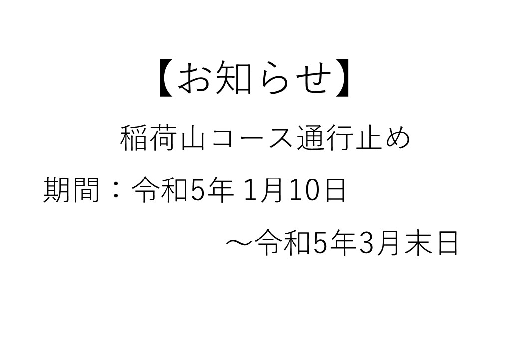 登山道改修工事のため、稲荷山コースは以下の日程で通行止めとなります。