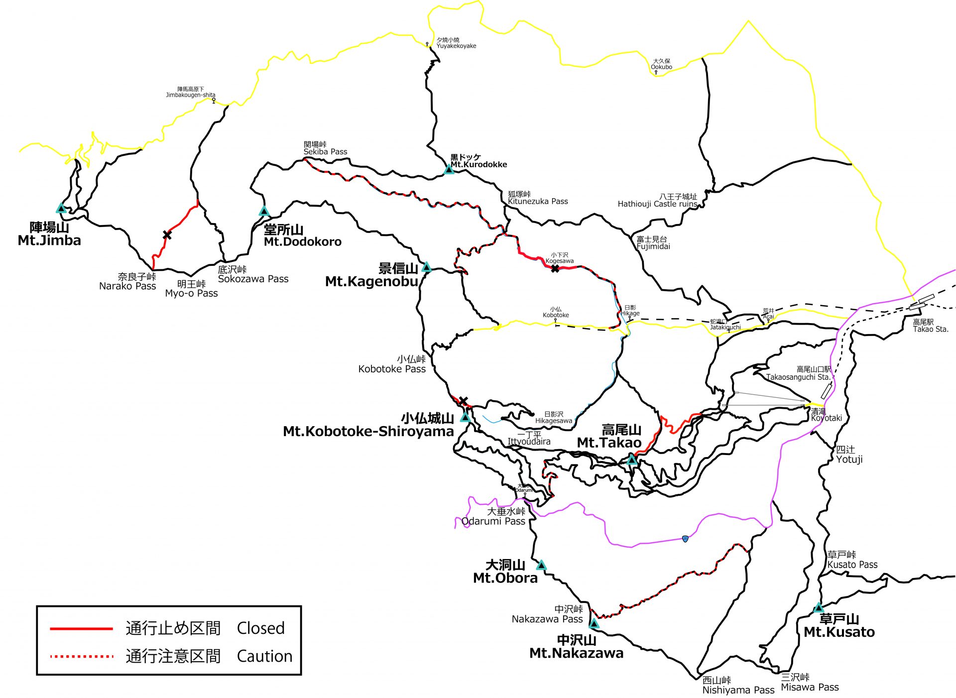 みやま橋付近で倒木が発生しましたので、4号路は通行止めとなります。