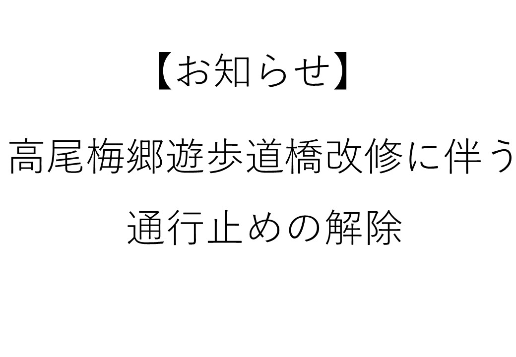 橋梁改修工事に伴い、令和5年3月3日(金)まで橋梁通行止としていましたが、床板の設置が完了したので、通行止を解除します。
