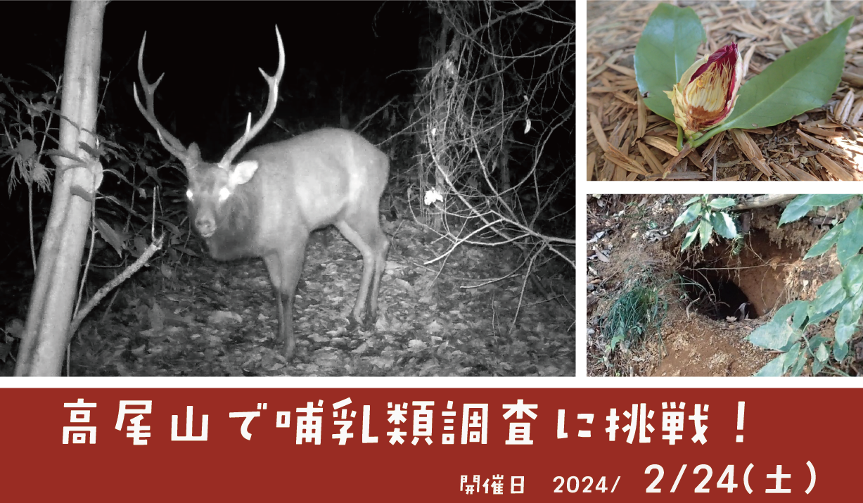 ビジターセンターの解説員が仕掛けた野外カメラにどんな動物が写っているか映像を見てみたり、森に残された動物の暮らしの痕跡を探して、高尾山に生息している動物たちを解説員と一緒に調べてみませんか。