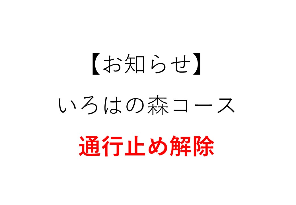 いろはの森コースの危険木処理が完了したため、通行止めが解除となりました。