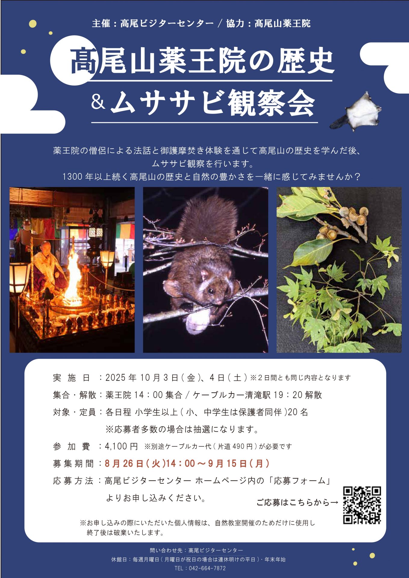 10/3(金)、10/4(土)自然教室『髙尾山薬王院の歴史&ムササビ観察会』募集開始