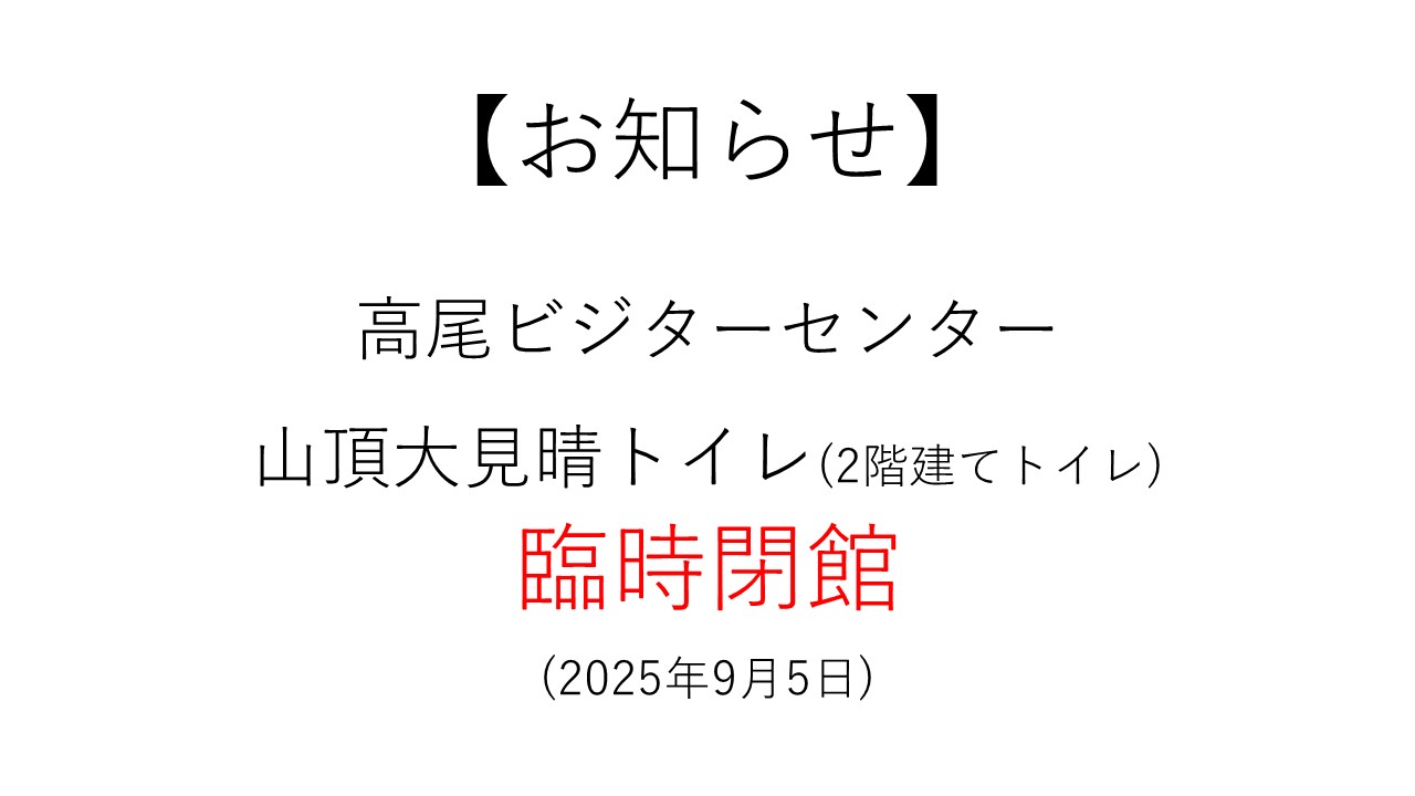 また、山頂大見晴トイレ(2階建てトイレ)も終日閉鎖となりますので、ご注意ください。