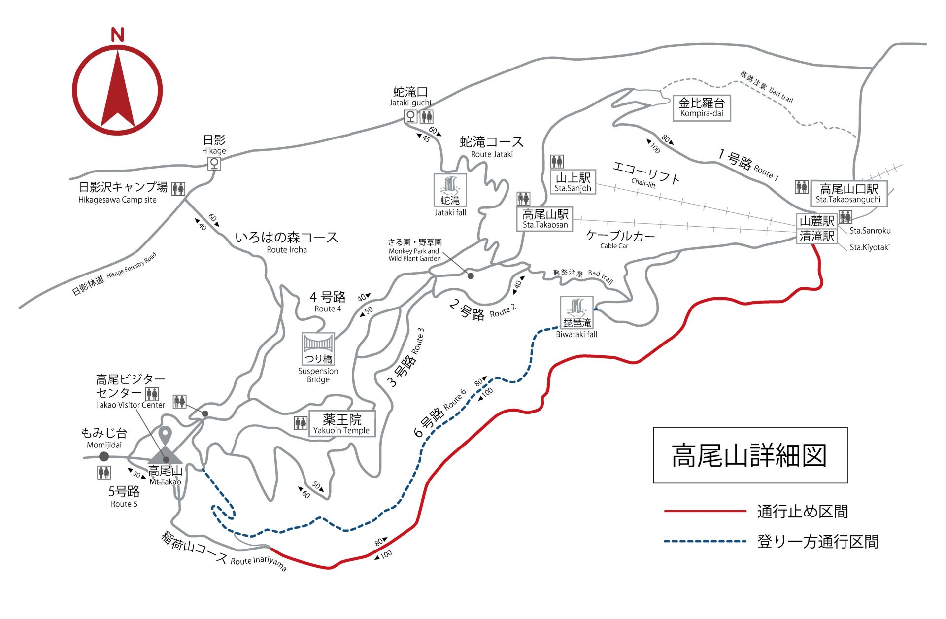 引き続き6号路の琵琶滝から5号路の交点の区間は、終日登り方向の一方通行となります。