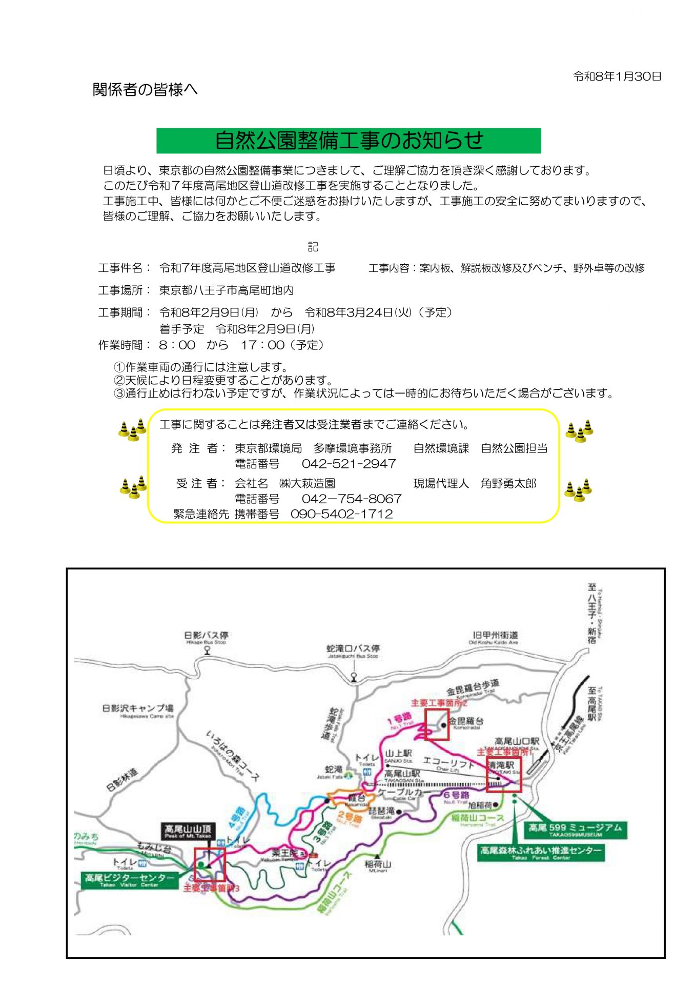 主要工事箇所:1号路麓周辺、金毘羅台周辺、高尾山山頂周辺