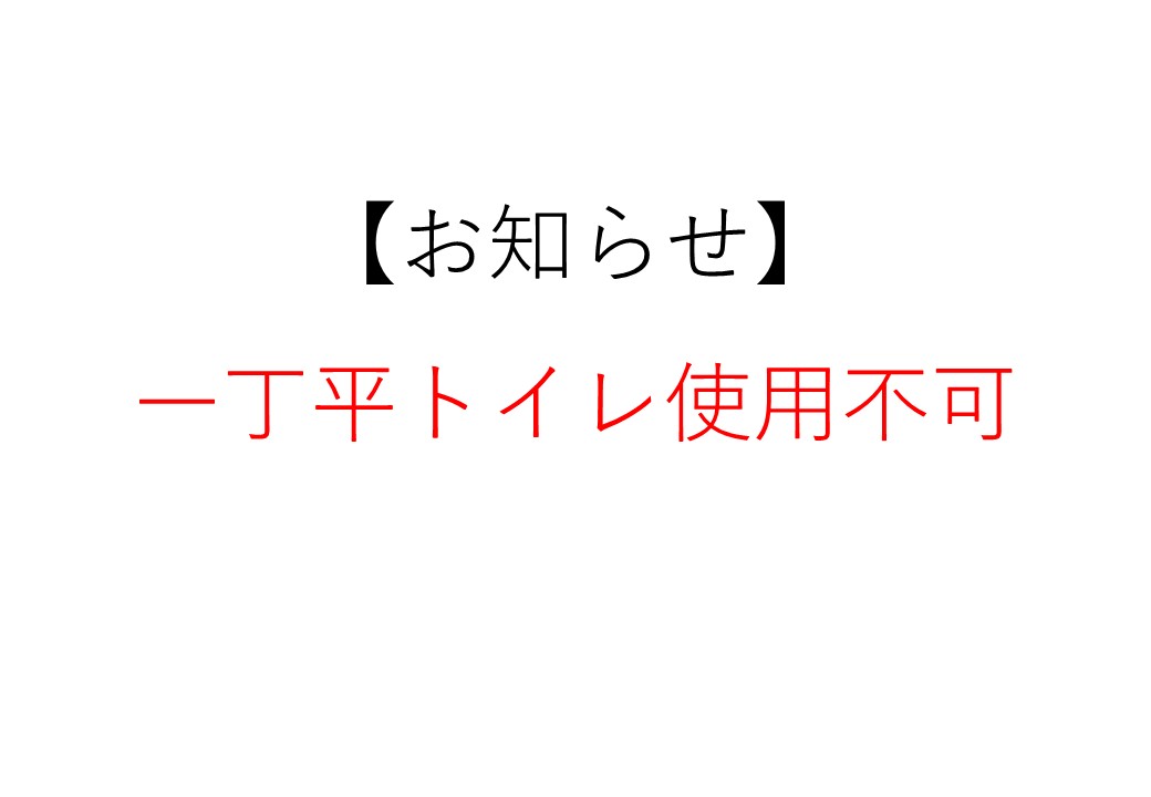 2026年2月11日 【お知らせ】一丁平トイレ使用不可 現在、一丁平トイレは水道設備の不具合のため、当面の間ご利用いただけません。 ご不便をおかけいたしますが、何卒ご理解・ご協力のほどよろしくお願いいたします。