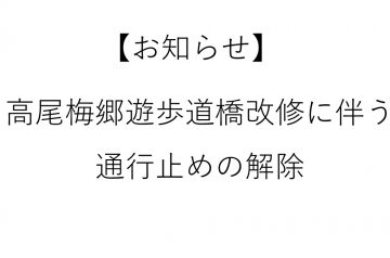 高尾梅郷遊歩道橋改修に伴う通行止 解除