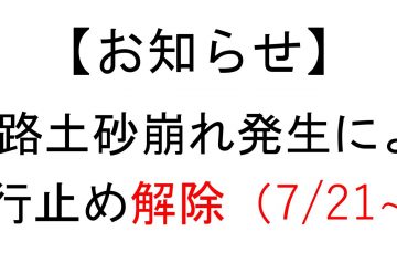 【お知らせ】6号路土砂崩れ発生による通行止め解除